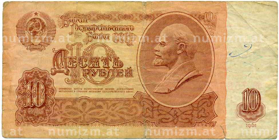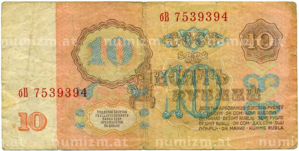 • Банкнота 10 рублей 1961 года (Артикул: K12-74301) — Фото №1 Банкнота 10 рублей 1961 года (Артикул: K12-74301) — Фото №2