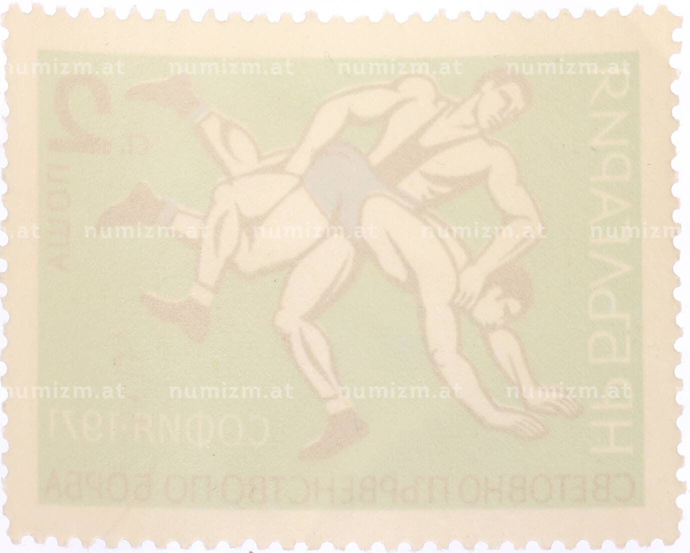 20.01.2025Интернет магазин «Нумизмат» предлагает приобрести Почтовая марка 2 стотинки 1971 года Болгария «Мировой чемпионат по борьбе в Софии — Борьба».