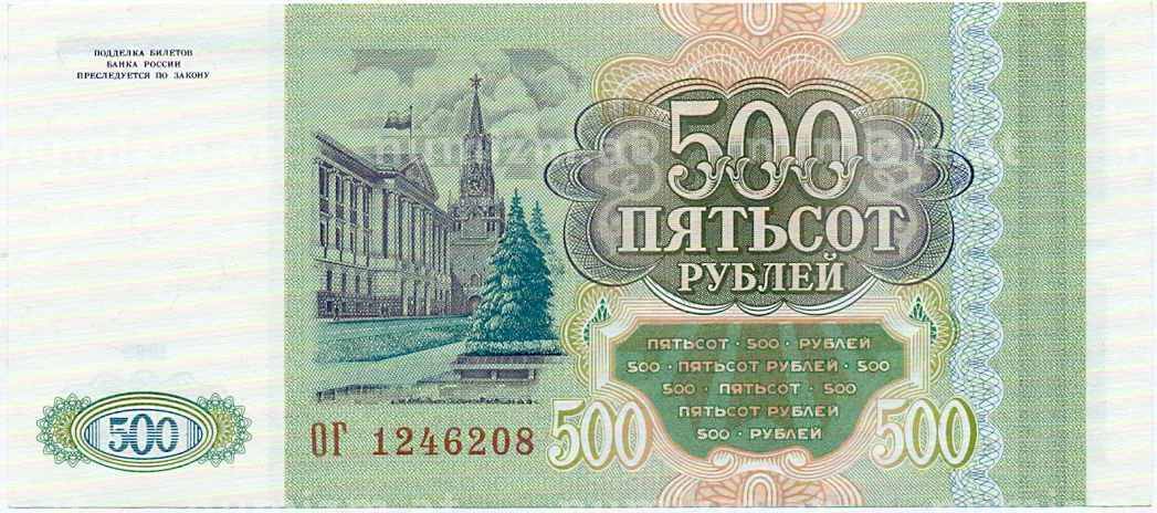 Банкнота 500 рублей 1993 года (Артикул: K12-74662): подробные характеристики, качественные фотографии в высоком разрешении, низкая цена.