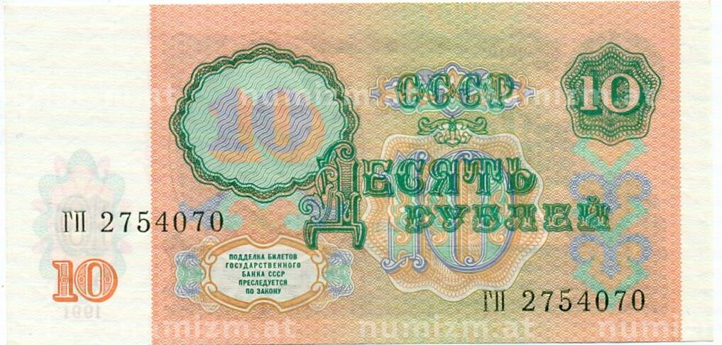 Банкнота 10 рублей 1991 года (Артикул: K12-74712): подробные характеристики, качественные фотографии в высоком разрешении, низкая цена.