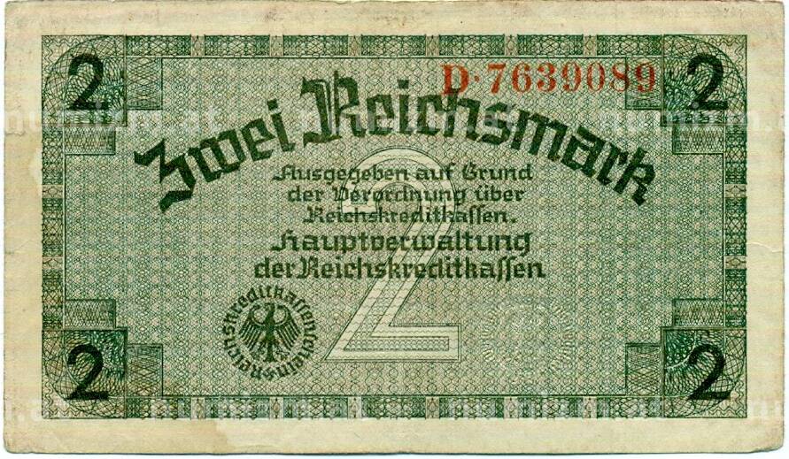 20.01.2025Интернет магазин «Нумизмат» предлагает приобрести 2 рейхсмарки 1940 года Германия (Для оккупированных территорий).