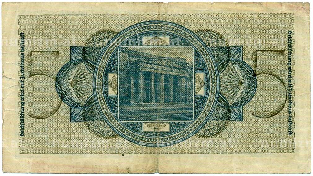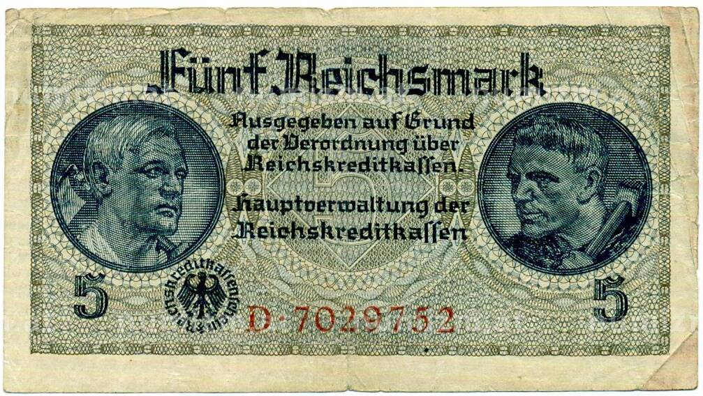 Купить 5 рейхсмарок 1940 года Германия (Для оккупированных территорий) по привлекательной цене можно в нашем интернет-магазине — Вам достаточно оформить заказ на сайте. Все монеты, представленные в каталоге, находятся в наличии на нашем складе.