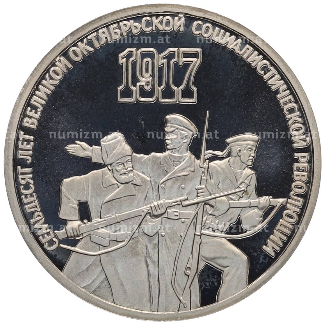 Купить 3 рубля 1987 года «70 лет Октябрьской революции» (Proof) по привлекательной цене можно в нашем интернет-магазине — Вам достаточно оформить заказ на сайте. Все монеты, представленные в каталоге, находятся в наличии на нашем складе.