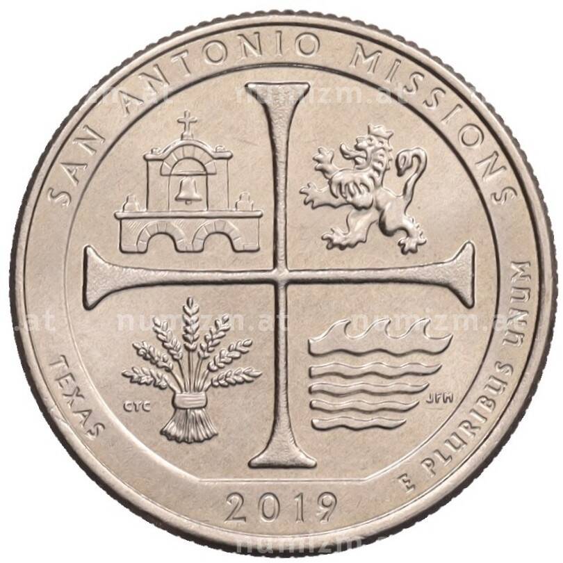 Купить 1/4 доллара (25 центов) 2019 года P США «Национальные парки — №49 Национальный Исторический Парк Миссии Сан-Антонио» по привлекательной цене можно в нашем интернет-магазине — Вам достаточно оформить заказ на сайте. Все монеты, представленные в каталоге, находятся в наличии на нашем складе.