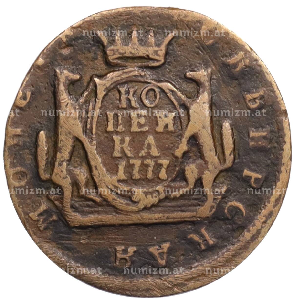 Купить 1 копейка 1777 года КМ «Сибирская монета» по привлекательной цене можно в нашем интернет-магазине — Вам достаточно оформить заказ на сайте. Все монеты, представленные в каталоге, находятся в наличии на нашем складе.
