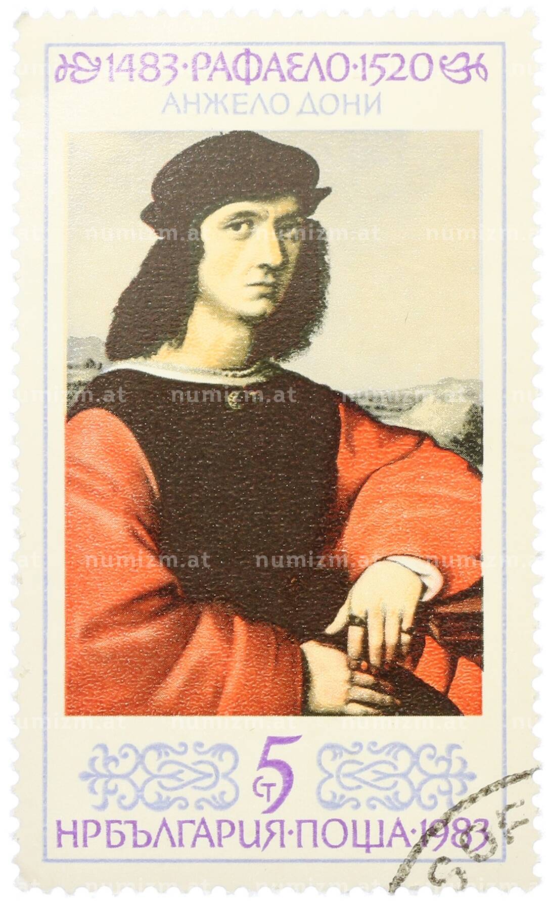 Купить Почтовая марка 5 стотинок 1983 года Болгария «Рафаэль Санти — Портрет Аньоло Дони» по привлекательной цене можно в нашем интернет-магазине — Вам достаточно оформить заказ на сайте. Все монеты, представленные в каталоге, находятся в наличии на нашем складе.