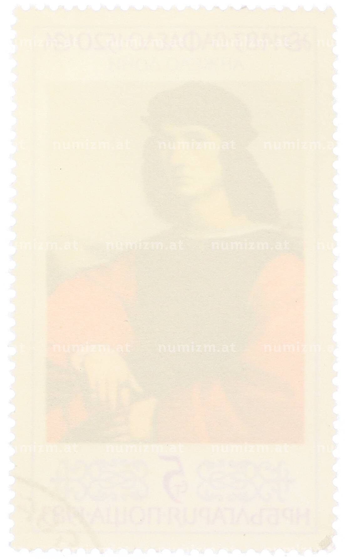 20.01.2025Интернет магазин «Нумизмат» предлагает приобрести Почтовая марка 5 стотинок 1983 года Болгария «Рафаэль Санти — Портрет Аньоло Дони».