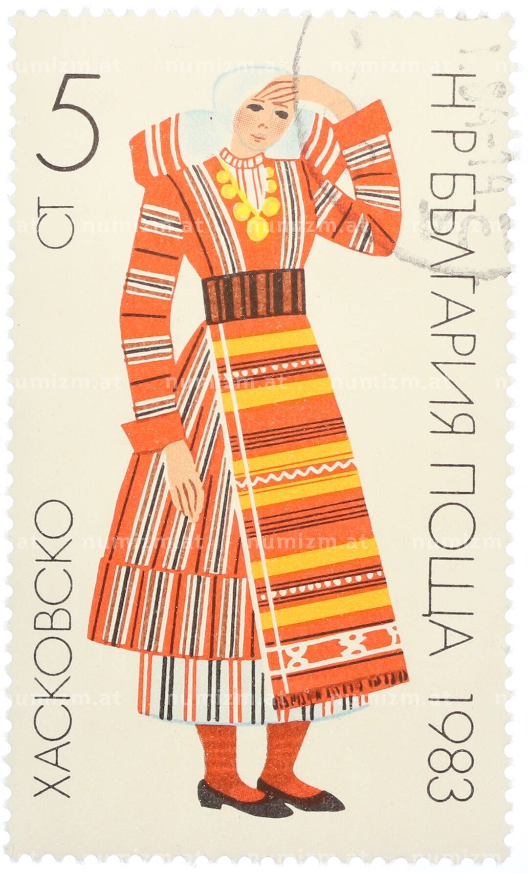 Купить Почтовая марка 5 стотинок 1983 года Болгария «Национальные костюмы — Хасково» по привлекательной цене можно в нашем интернет-магазине — Вам достаточно оформить заказ на сайте. Все монеты, представленные в каталоге, находятся в наличии на нашем складе.