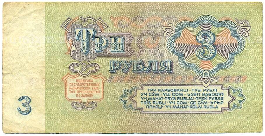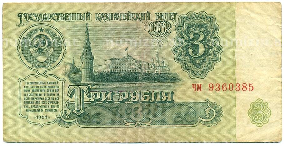 Банкнота 3 рубля 1961 года (Артикул: K12-76375): подробные характеристики, качественные фотографии в высоком разрешении, низкая цена.