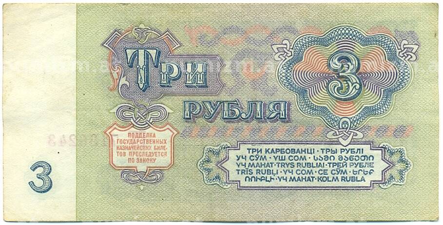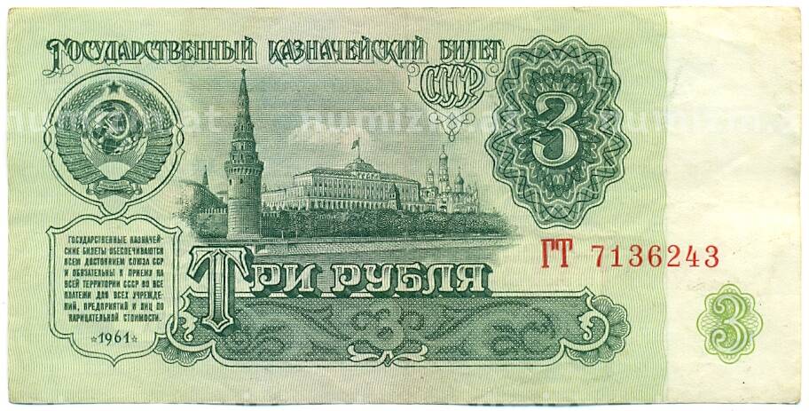 Банкнота 3 рубля 1961 года (Артикул: K12-76376): подробные характеристики, качественные фотографии в высоком разрешении, низкая цена.