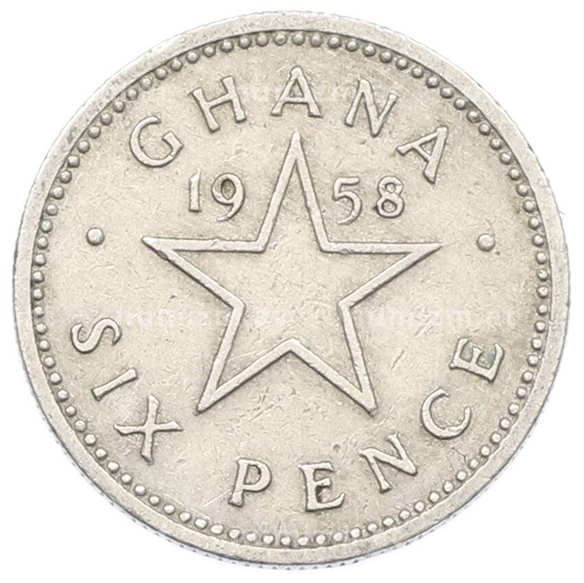 Купить 6 пенсов 1958 года Гана по привлекательной цене можно в нашем интернет-магазине — Вам достаточно оформить заказ на сайте. Все монеты, представленные в каталоге, находятся в наличии на нашем складе.