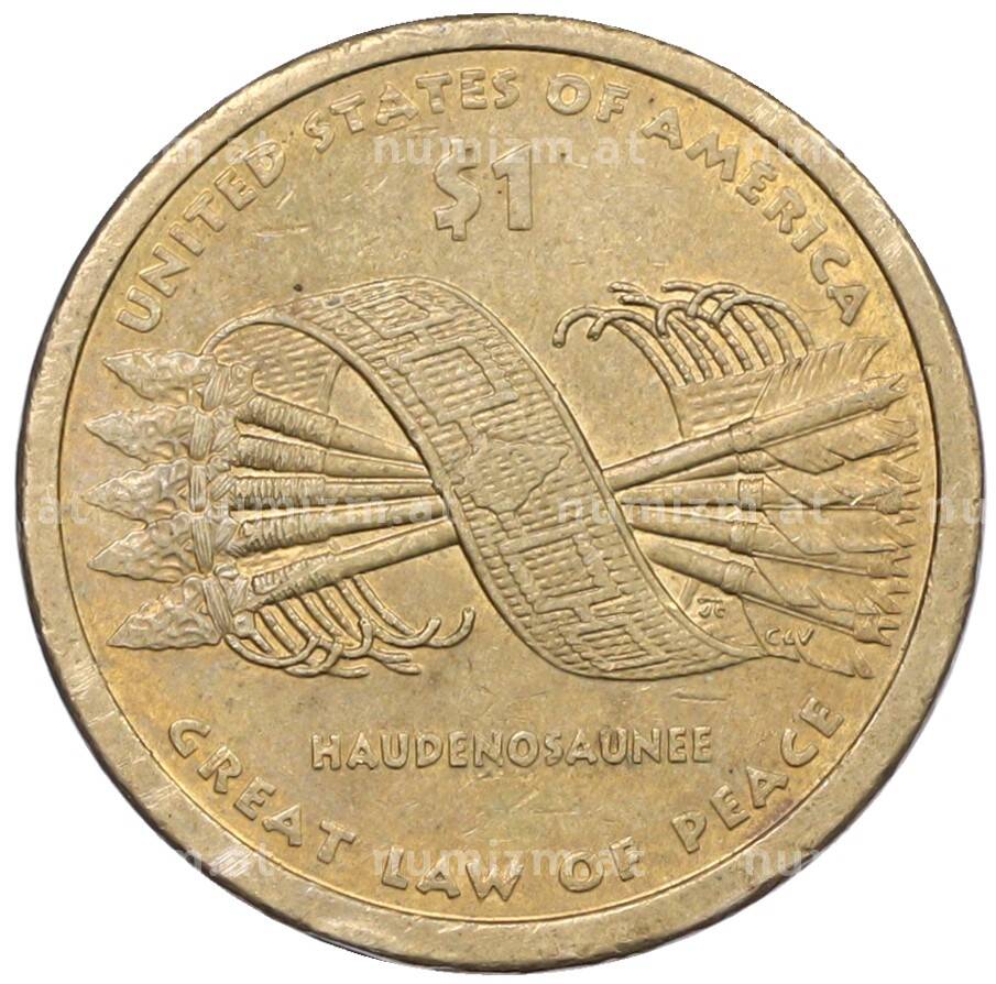 Купить 1 доллар 2010 года (Р) США «Коренные американцы (Сакагавея) — Великий закон о мире (Стрелы)» по привлекательной цене можно в нашем интернет-магазине — Вам достаточно оформить заказ на сайте. Все монеты, представленные в каталоге, находятся в наличии на нашем складе.