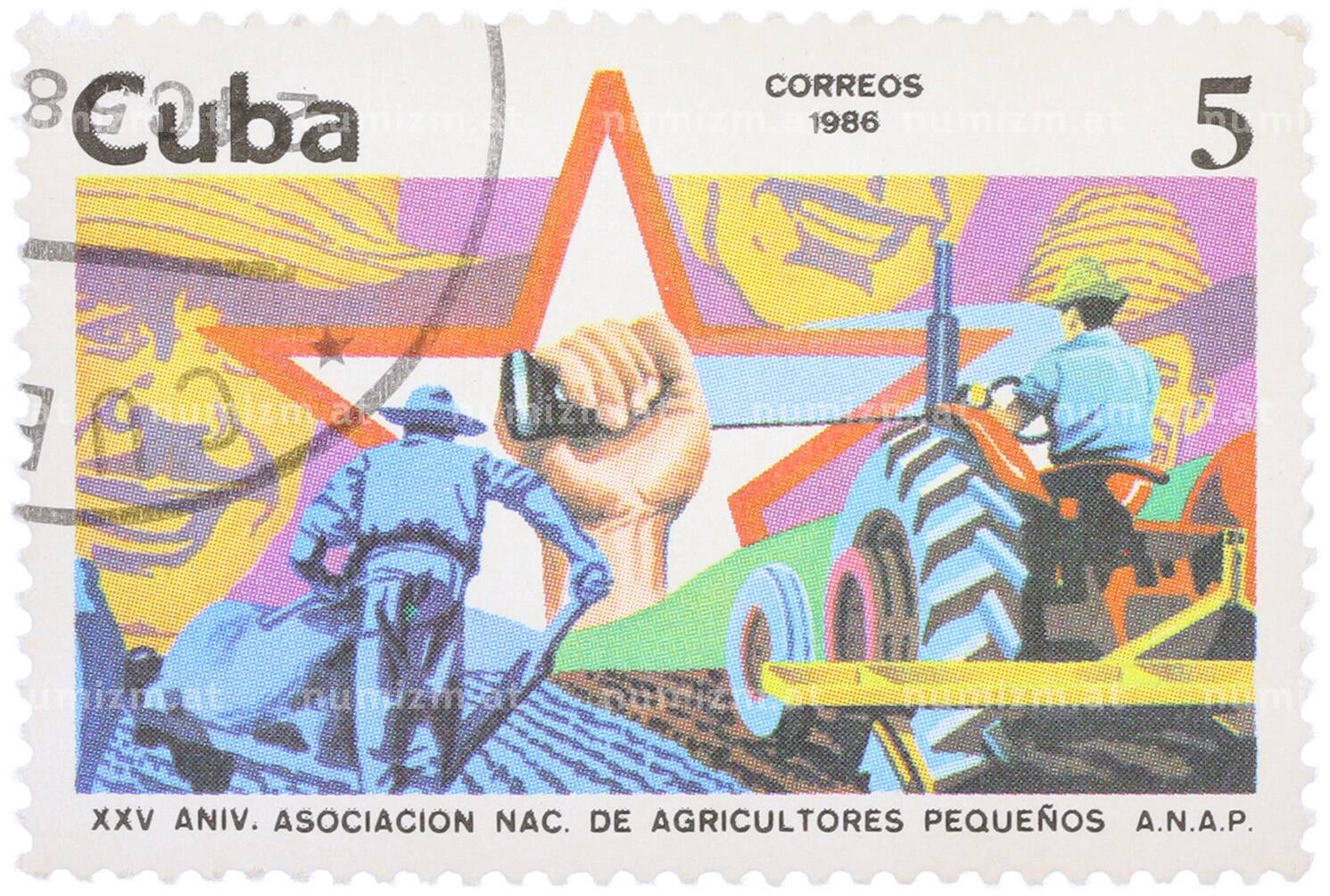 Купить Почтовая марка 5 сентаво 1986 года Куба «25-й годовщина Национальной ассоциации мелких фермеров (ANAP)» по привлекательной цене можно в нашем интернет-магазине — Вам достаточно оформить заказ на сайте. Все монеты, представленные в каталоге, находятся в наличии на нашем складе.
