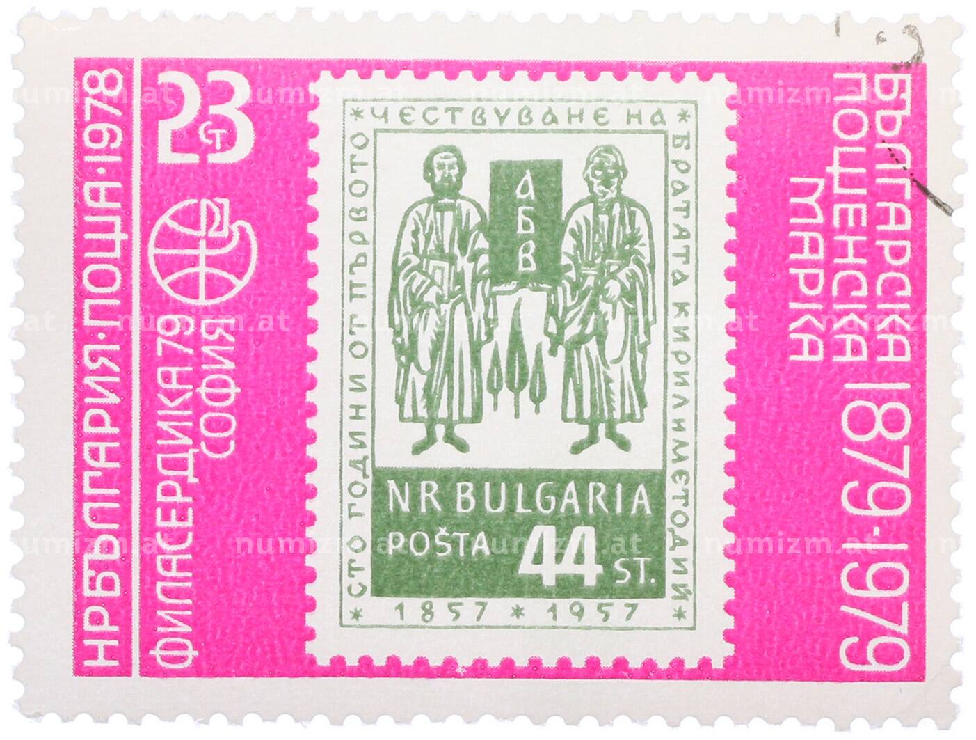 Купить Почтовая марка 23 стотинки 1978 года Болгария «Филасердика-79 — Печать о канонизации святых Кирилла и Мефодия (марка 1957 года)» по привлекательной цене можно в нашем интернет-магазине — Вам достаточно оформить заказ на сайте. Все монеты, представленные в каталоге, находятся в наличии на нашем складе.