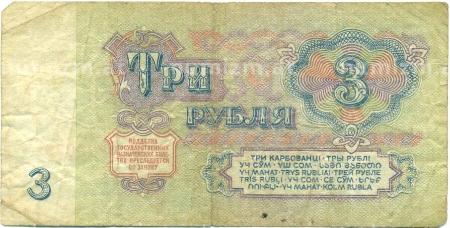 Банкнота 3 рубля 1961 года (Артикул: K12-77466): подробные характеристики, качественные фотографии в высоком разрешении, низкая цена.