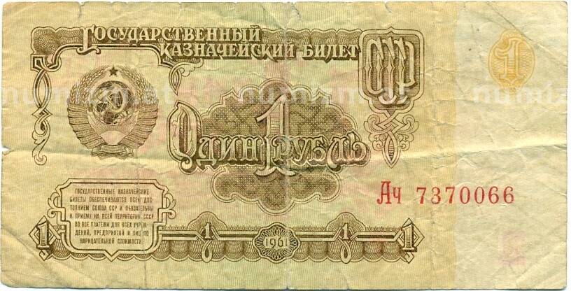 Банкнота 1 рубль 1961 года (Артикул: K12-77467): подробные характеристики, качественные фотографии в высоком разрешении, низкая цена.