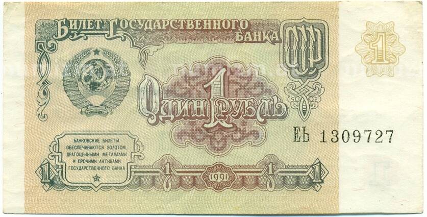 Банкнота 1 рубль 1991 года (Артикул: K12-77476): подробные характеристики, качественные фотографии в высоком разрешении, низкая цена.