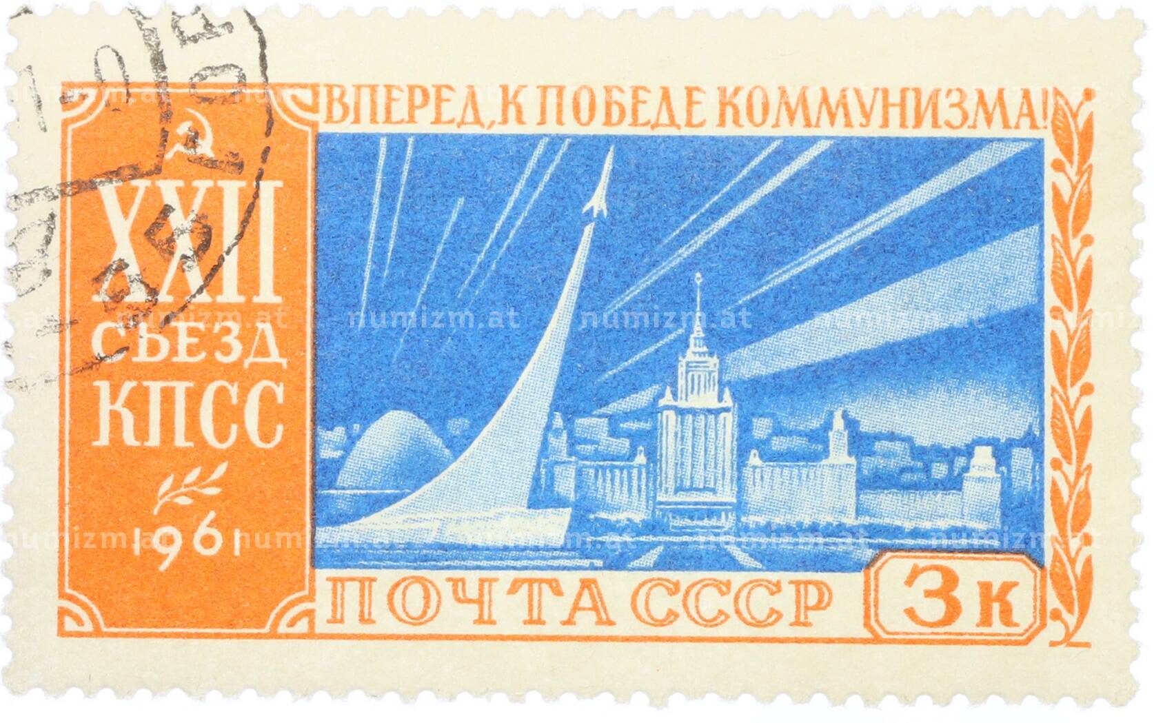 Почтовая марка 3 копейки 1961 года «XXII съезд КПСС — Торжество советской науки и техники» (Артикул: K12-77665): подробные характеристики, качественные фотографии в высоком разрешении, низкая цена.