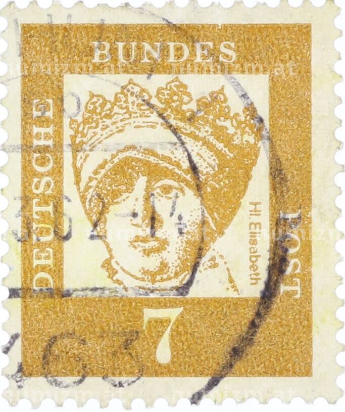 Почтовая марка 7 пфеннигов 1961 года Западная Германия (ФРГ) «Выдающиеся немцы — Елизавета Венгерская» (Артикул: K12-77686): подробные характеристики, качественные фотографии в высоком разрешении, низкая цена.