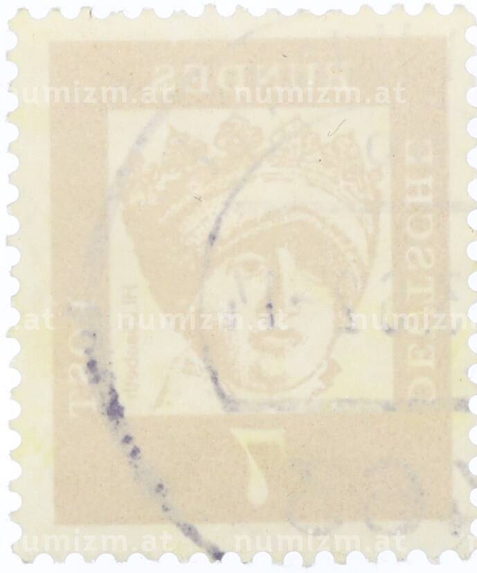 Купить Почтовая марка 7 пфеннигов 1961 года Западная Германия (ФРГ) «Выдающиеся немцы — Елизавета Венгерская» по привлекательной цене можно в нашем интернет-магазине — Вам достаточно оформить заказ на сайте. Все монеты, представленные в каталоге, находятся в наличии на нашем складе.