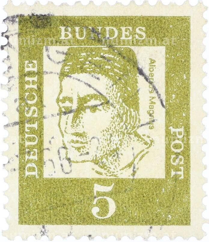 Почтовая марка 5 пфеннигов 1961 года Западная Германия (ФРГ) «Выдающиеся немцы — Альберт Великий» [Артикул: K12-77687]