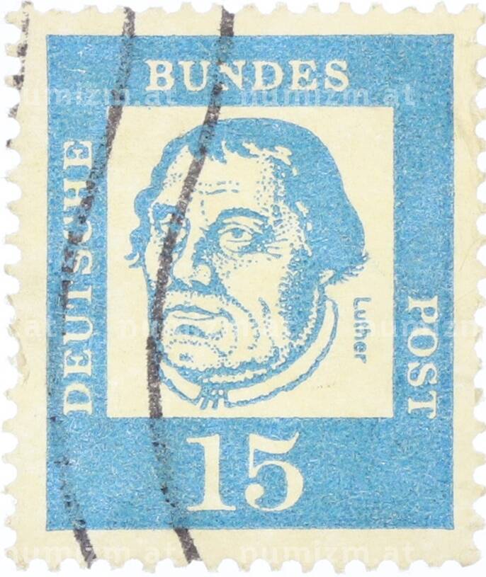 Купить Почтовая марка 15 пфеннигов 1961 года Западная Германия (ФРГ) «Выдающиеся немцы — Мартин Лютер» по привлекательной цене можно в нашем интернет-магазине — Вам достаточно оформить заказ на сайте. Все монеты, представленные в каталоге, находятся в наличии на нашем складе.