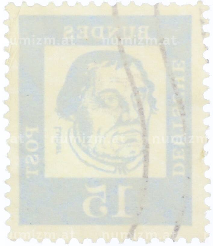 20.01.2025Интернет магазин «Нумизмат» предлагает приобрести Почтовая марка 15 пфеннигов 1961 года Западная Германия (ФРГ) «Выдающиеся немцы — Мартин Лютер».
