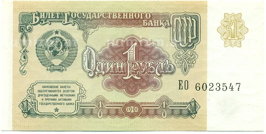 Банкнота 1 рубль 1991 года (Артикул: K12-77738): подробные характеристики, качественные фотографии в высоком разрешении, низкая цена.