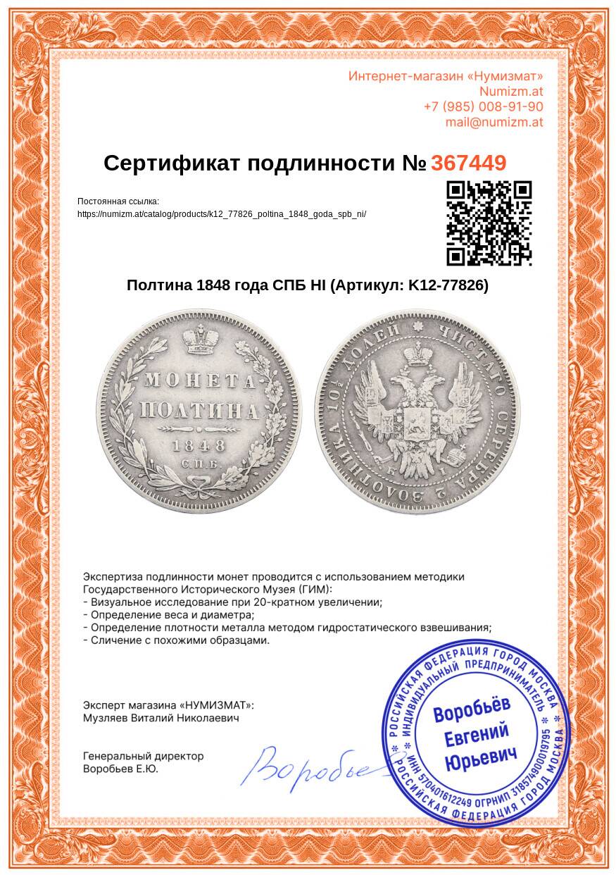 Купить Полтина 1848 года СПБ НI по привлекательной цене можно в нашем интернет-магазине — Вам достаточно оформить заказ на сайте. Все монеты, представленные в каталоге, находятся в наличии на нашем складе.