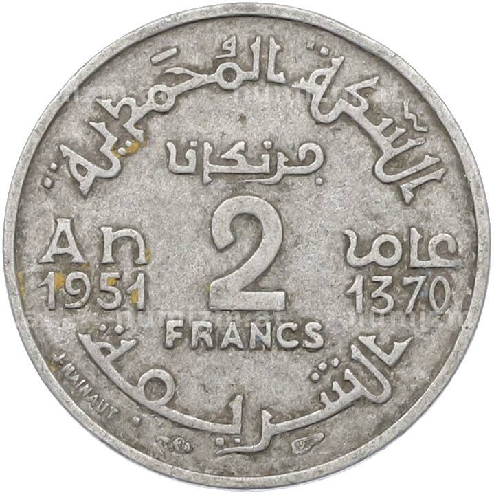 Купить 2 франка 1951 года (AH 1370) Марокко (Французский протекторат) по привлекательной цене можно в нашем интернет-магазине — Вам достаточно оформить заказ на сайте. Все монеты, представленные в каталоге, находятся в наличии на нашем складе.