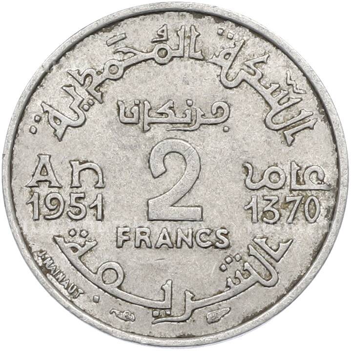 Купить 2 франка 1951 года (AH 1370) Марокко (Французский протекторат) по привлекательной цене можно в нашем интернет-магазине — Вам достаточно оформить заказ на сайте. Все монеты, представленные в каталоге, находятся в наличии на нашем складе.