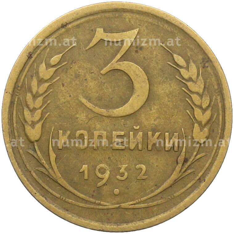 Монета 3 копейки 1932 года (Артикул: K12-78536): подробные характеристики, качественные фотографии в высоком разрешении, низкая цена.