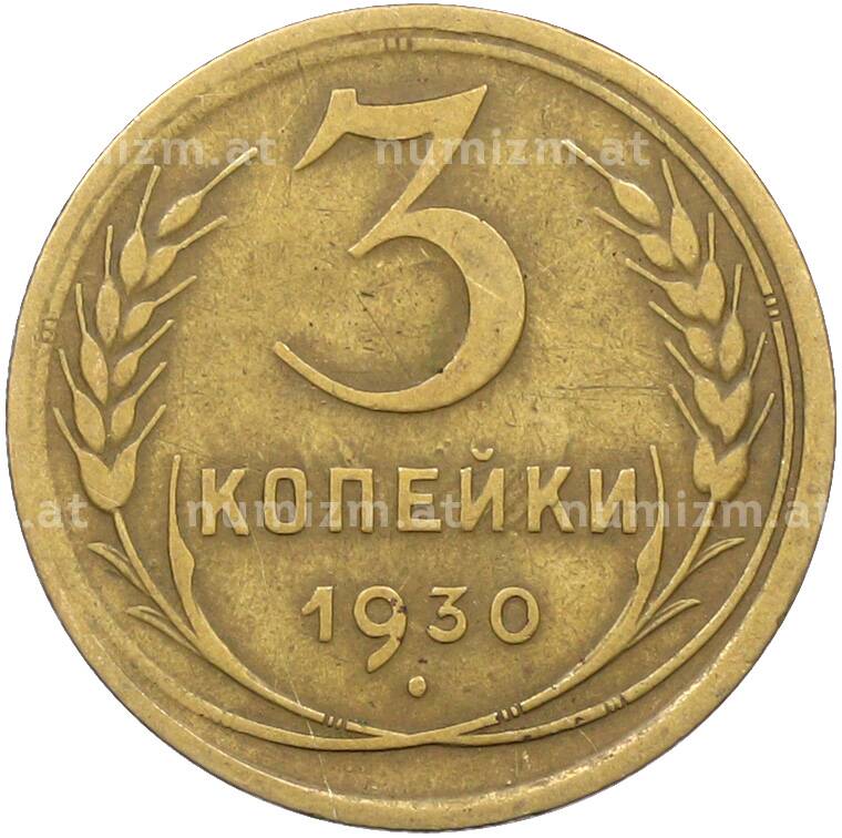 Монета 3 копейки 1930 года (Артикул: K12-78572): подробные характеристики, качественные фотографии в высоком разрешении, низкая цена.
