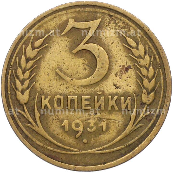 Монета 3 копейки 1931 года (Артикул: K12-79003): подробные характеристики, качественные фотографии в высоком разрешении, низкая цена.