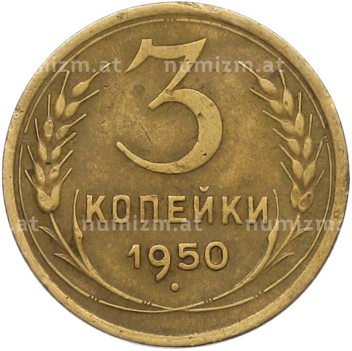 Купить 3 копейки 1950 года по привлекательной цене можно в нашем интернет-магазине — Вам достаточно оформить заказ на сайте. Все монеты, представленные в каталоге, находятся в наличии на нашем складе.