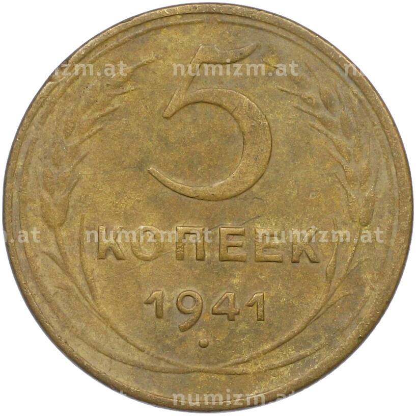 Монета 5 копеек 1941 года (Артикул: K12-79021): подробные характеристики, качественные фотографии в высоком разрешении, низкая цена.