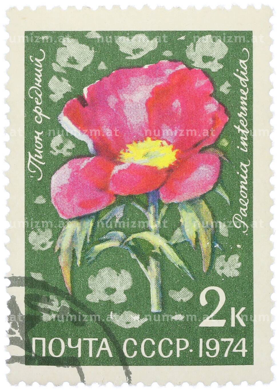 Интернет магазин «Нумизмат» предлагает приобрести Почтовая марка 2 копейки 1974 года «Цветы альпийских лугов Средней Азии — Пион средний».