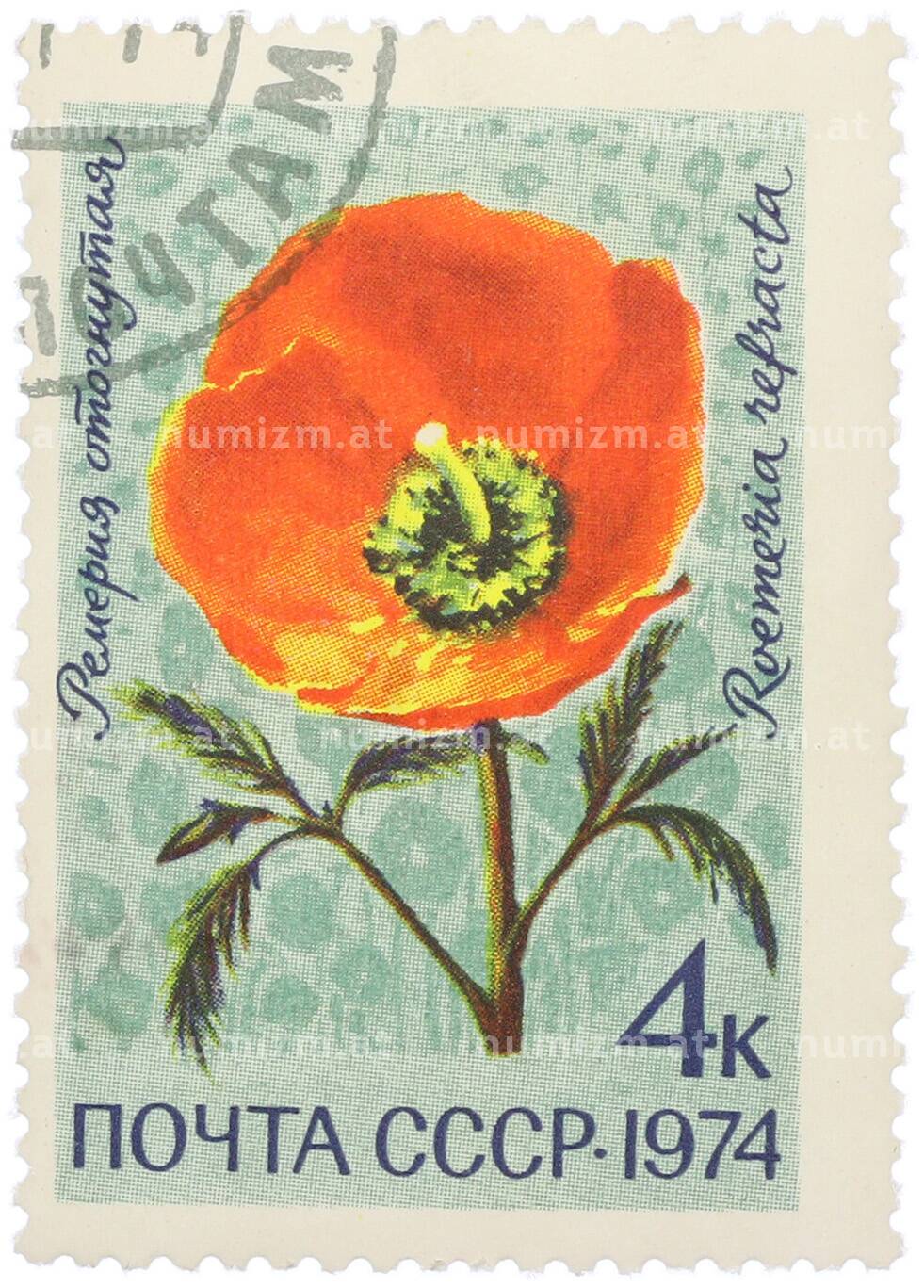 Интернет магазин «Нумизмат» предлагает приобрести Почтовая марка 4 копейки 1974 года «Цветы альпийских лугов Средней Азии — Ремерия отогнутая».