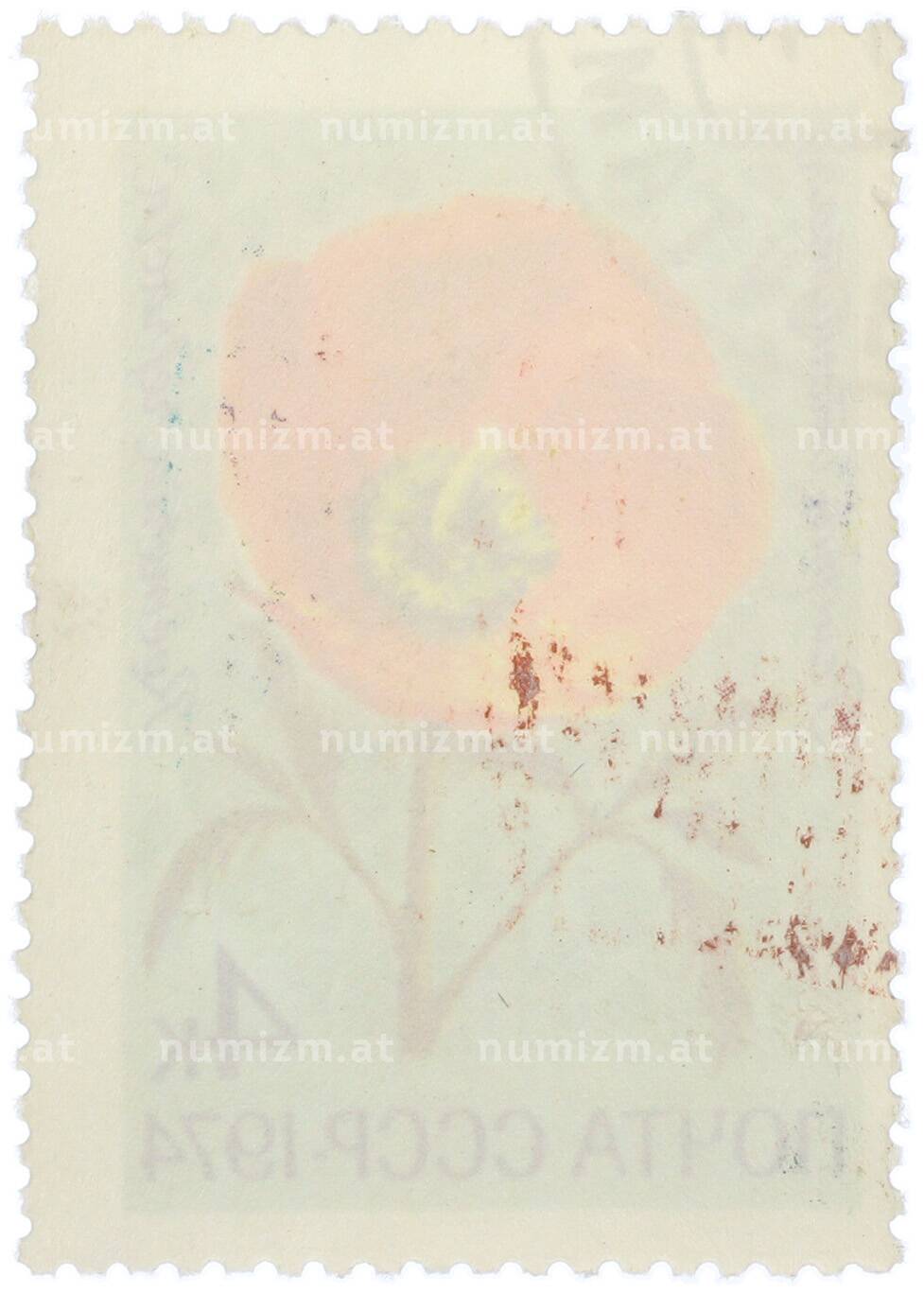 Почтовая марка 4 копейки 1974 года «Цветы альпийских лугов Средней Азии — Ремерия отогнутая» [Артикул: K12-79104]