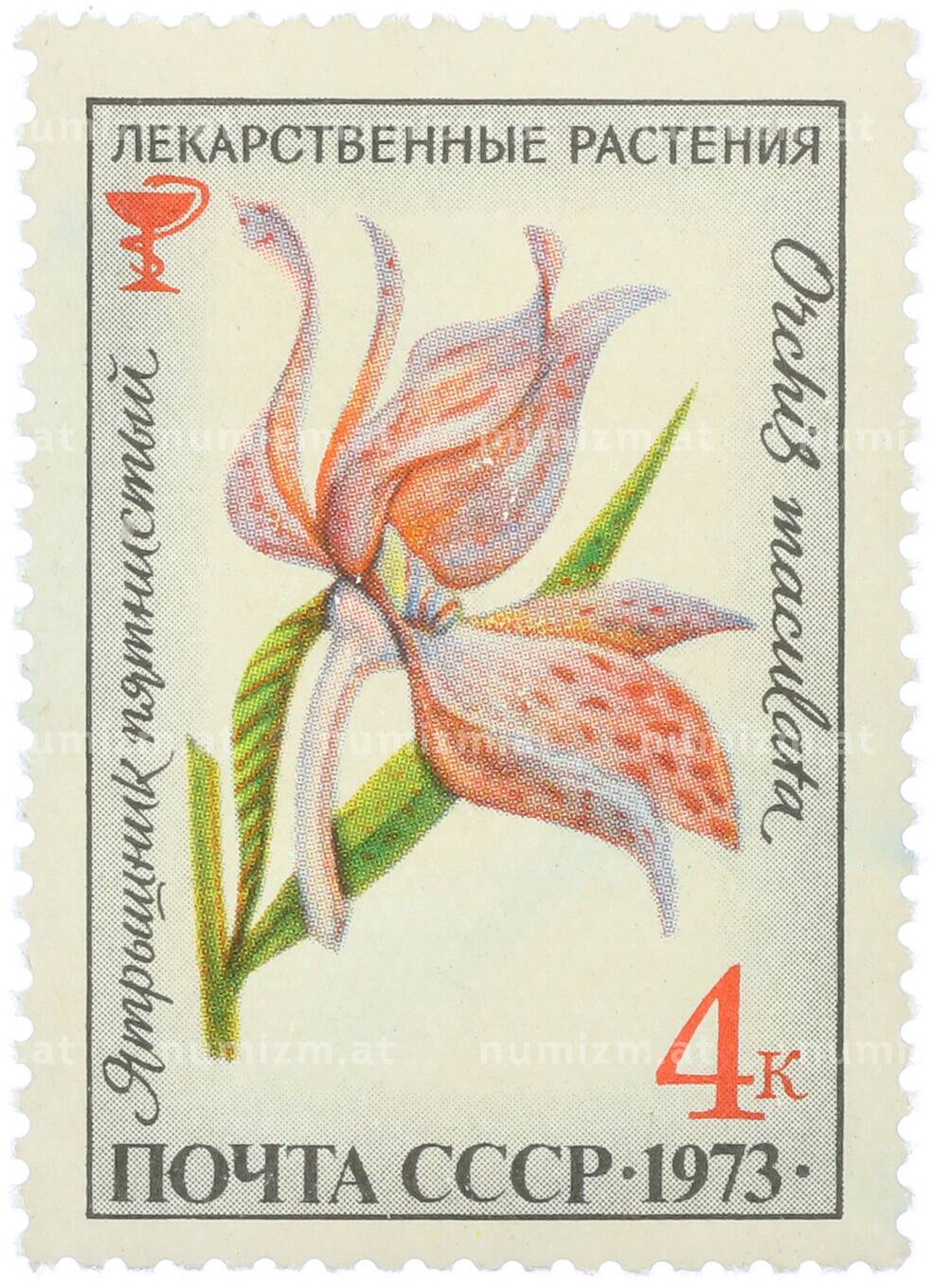 Купить Почтовая марка 4 копейки 1973 года «Лекарственные растения — Ятрышник пятнистый» по привлекательной цене можно в нашем интернет-магазине — Вам достаточно оформить заказ на сайте. Все монеты, представленные в каталоге, находятся в наличии на нашем складе.