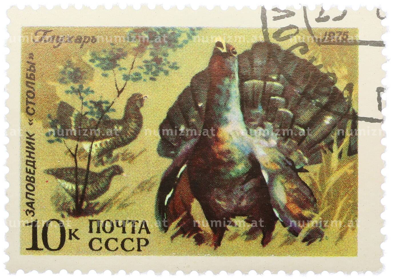 Почтовая марка 10 копеек 1975 года «Заповедник Столбы — Глухарь» (Артикул: K12-79133): подробные характеристики, качественные фотографии в высоком разрешении, низкая цена.