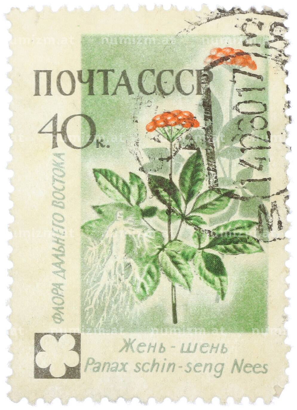 Почтовая марка 40 копеек 1960 года «Флора Дальнего Востока — Женьшень обыкновенный» (Артикул: K12-79262): подробные характеристики, качественные фотографии в высоком разрешении, низкая цена.