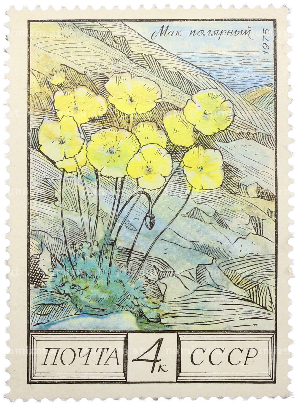 Почтовая марка 4 копейки 1976 года «Флора СССР — Мак полярный» (Артикул: K12-79331): подробные характеристики, качественные фотографии в высоком разрешении, низкая цена.