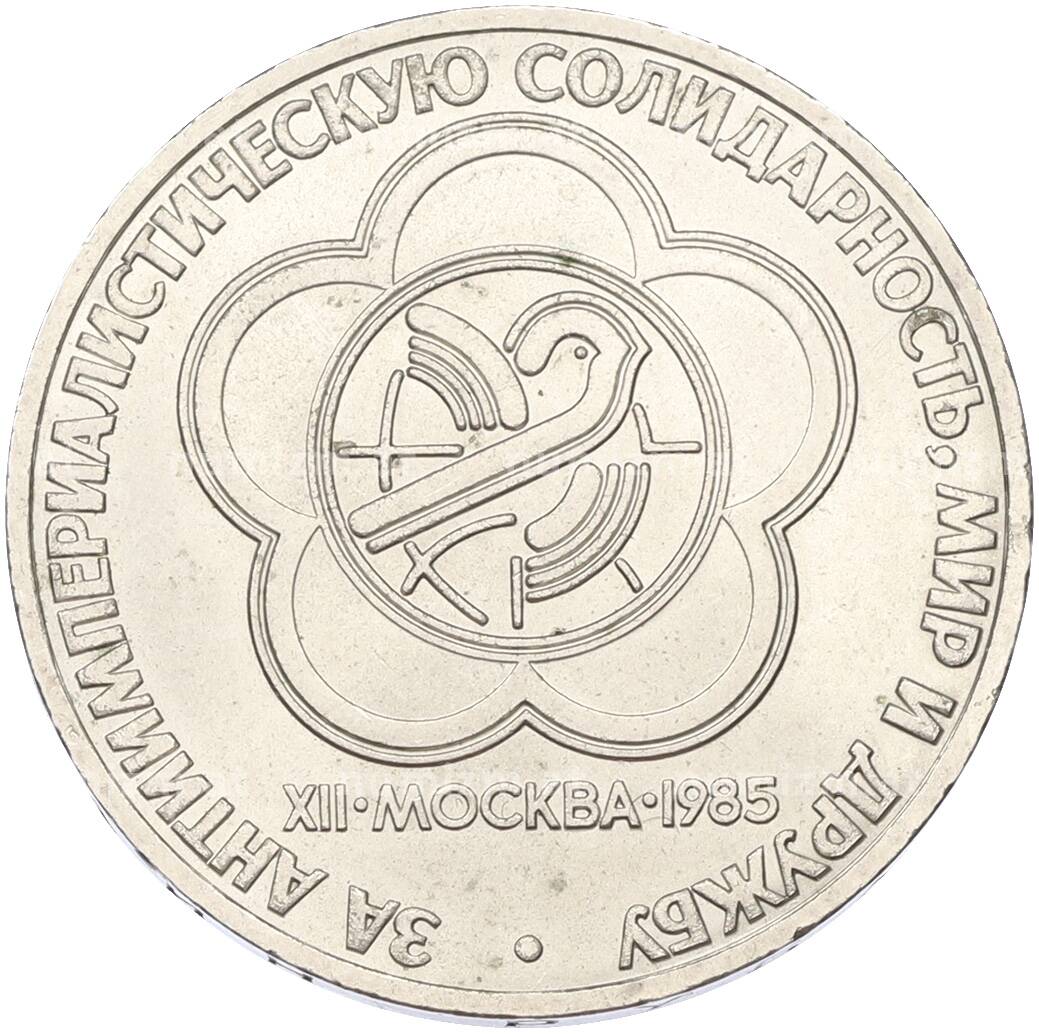 Купить 1 рубль 1985 года «XII Международный фестиваль молодежи и студентов в Москве» по привлекательной цене можно в нашем интернет-магазине — Вам достаточно оформить заказ на сайте. Все монеты, представленные в каталоге, находятся в наличии на нашем складе.