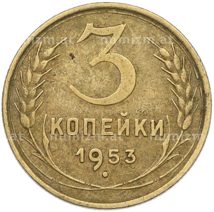 Купить 3 копейки 1953 года по привлекательной цене можно в нашем интернет-магазине — Вам достаточно оформить заказ на сайте. Все монеты, представленные в каталоге, находятся в наличии на нашем складе.