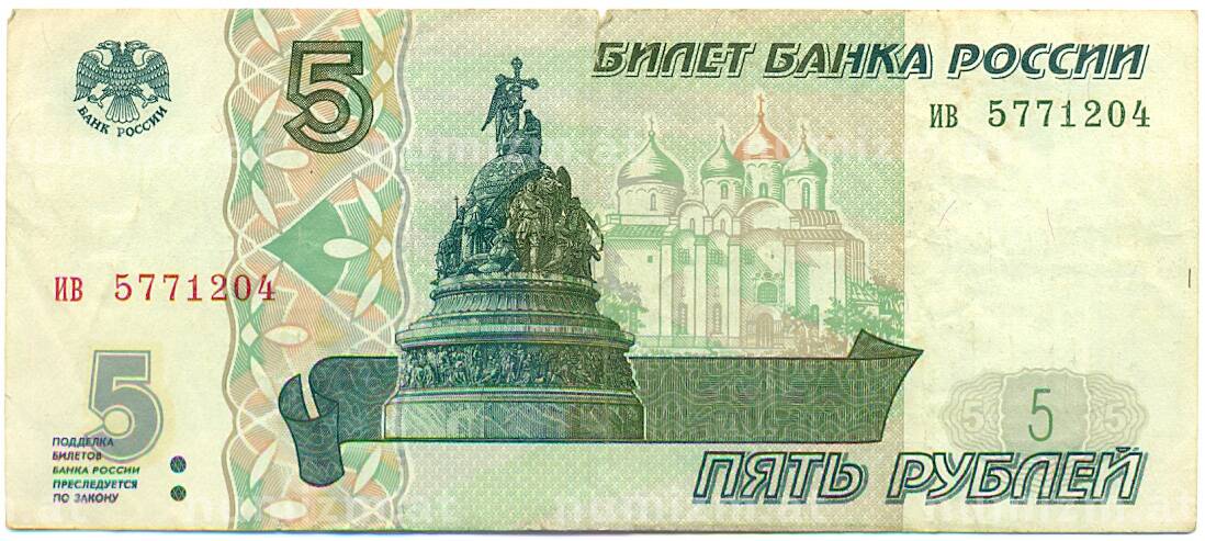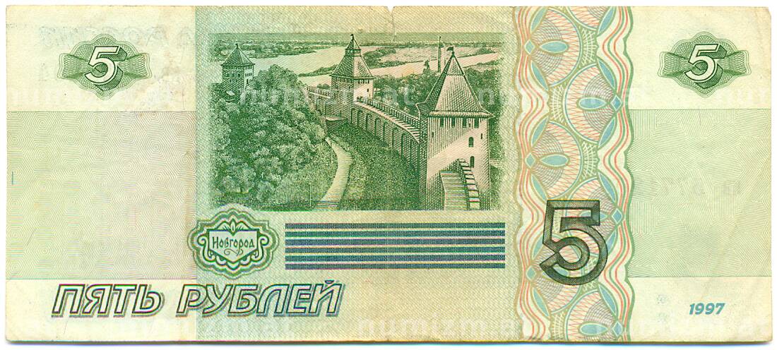 Банкнота 5 рублей 1997 года (Артикул: K12-79650): подробные характеристики, качественные фотографии в высоком разрешении, низкая цена.