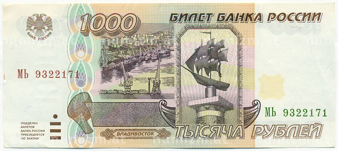 Банкнота 1000 рублей 1995 года (Артикул: K12-79667): подробные характеристики, качественные фотографии в высоком разрешении, низкая цена.