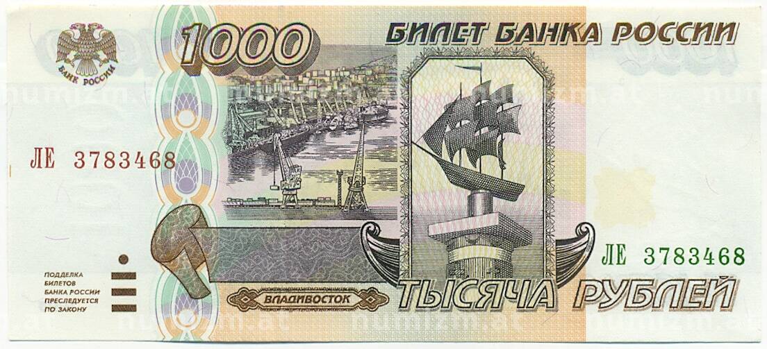 Интернет магазин «Нумизмат» предлагает приобрести 1000 рублей 1995 года.