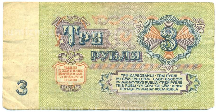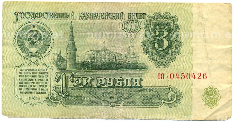 Банкнота 3 рубля 1961 года (Артикул: K12-79678): подробные характеристики, качественные фотографии в высоком разрешении, низкая цена.