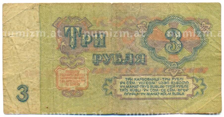 Банкнота 3 рубля 1961 года (Артикул: K12-79679): подробные характеристики, качественные фотографии в высоком разрешении, низкая цена.